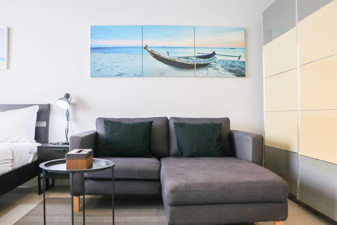 Studio Apartment. The apartment features 1 bedroom and 1 bathroom with a shower and free toiletries. The well-equipped kitchen has a refrigerator, an oven and an electric kettle. The air-conditioned apartment provides a TV with cable channels, a seating area, a dining area and a wardrobe. The unit offers 1 bed.