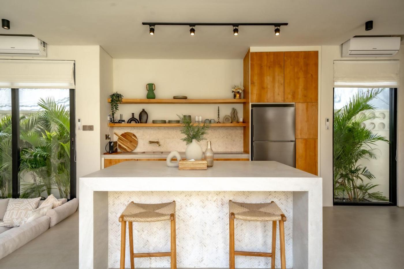 Two-Bedroom Villa. This villa offers a private pool. The well-equipped kitchen features a stovetop, a refrigerator, kitchenware and a microwave. The air-conditioned villa provides a flat-screen TV, a private entrance, a coffee machine, a seating area as well as pool views. The unit offers 2 beds.