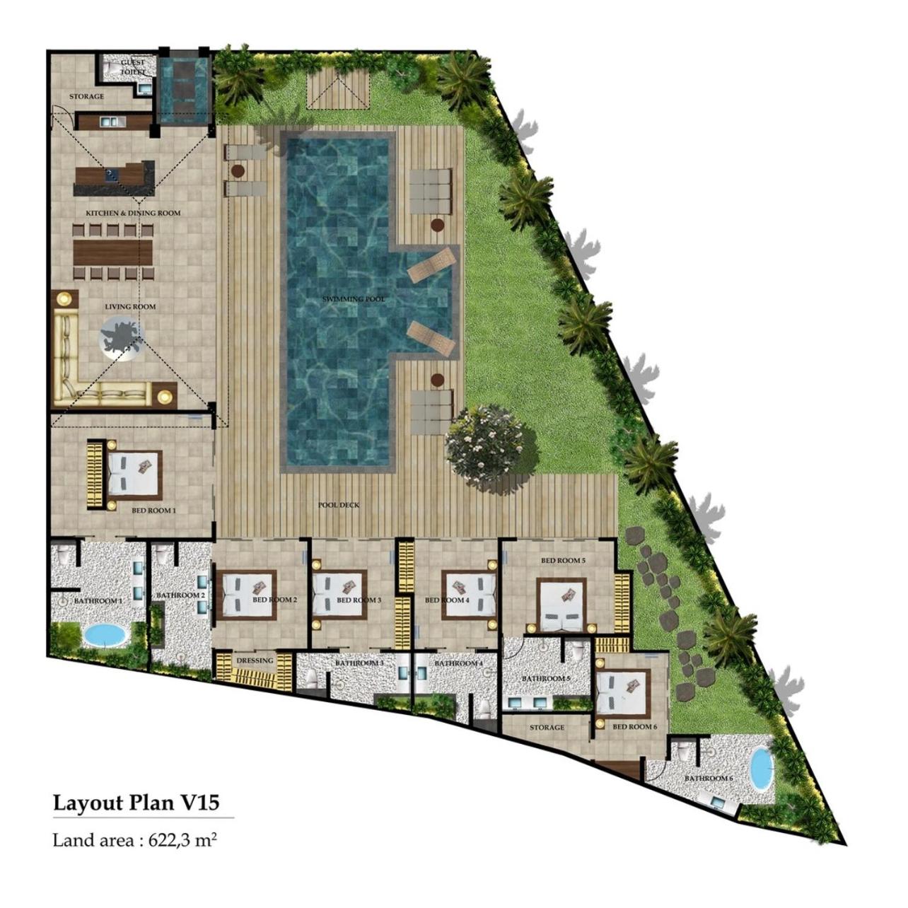 Deluxe Villa. This villa features a private pool. This spacious villa is comprised of 1 living room, 6 separate bedrooms and 7 bathrooms with a bath and free toiletries. In the fully equipped kitchen, guests will find a stovetop, a refrigerator, a microwave and a toaster. Featuring a patio, this villa also offers air conditioning, a tea and coffee maker and a TV. The unit offers 6 beds.