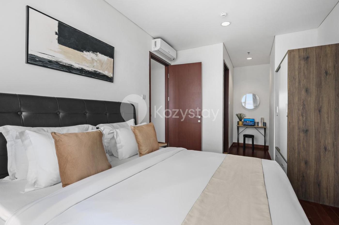 Two-Bedroom Apartment. The spacious apartment has 2 bedrooms and 2 bathrooms with a shower and free toiletries. The well-equipped kitchen features a stovetop, a refrigerator, kitchenware and a microwave. The air-conditioned apartment features a flat-screen TV with streaming services, a washing machine, a seating area, a dining area as well as city views. The unit has 2 beds.