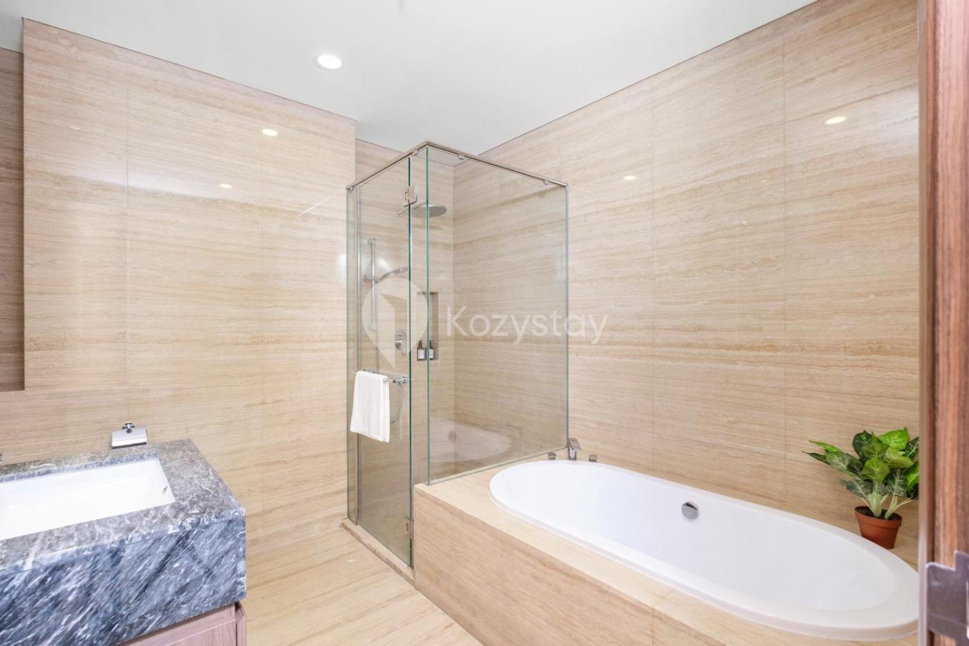 Two-Bedroom Apartment. This apartments standout features are the hot tub and sauna. Boasting a private entrance, this spacious apartment also includes 2 separate bedrooms and 2 bathrooms with a bidet and a hairdryer. Meals can be prepared in the kitchen, which is fitted with a stovetop, a refrigerator, an oven and a microwave. This air-conditioned apartment features a dining area, a flat-screen TV with streaming services a washing machine and a balcony. The unit has 2 beds.