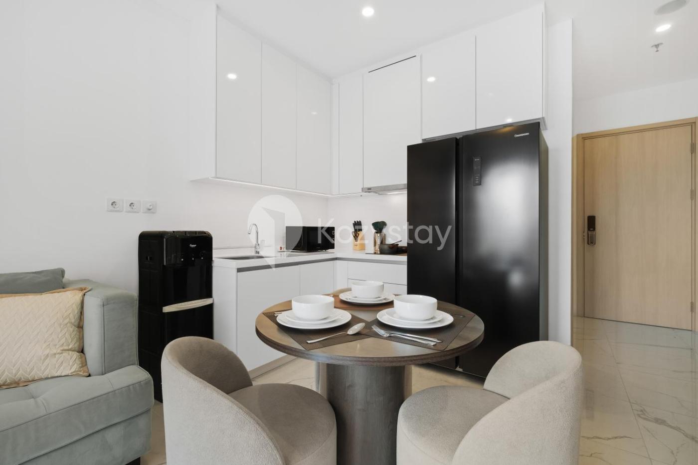 Two-Bedroom Apartment. This apartment includes 1 living room, 2 separate bedrooms and 1 bathroom with a shower and free toiletries. The kitchen is fitted with a stovetop, a refrigerator and a microwave. The air-conditioned apartment offers a flat-screen TV with streaming services, a washing machine, a seating area, a dining area as well as city views. The unit has 2 beds.
