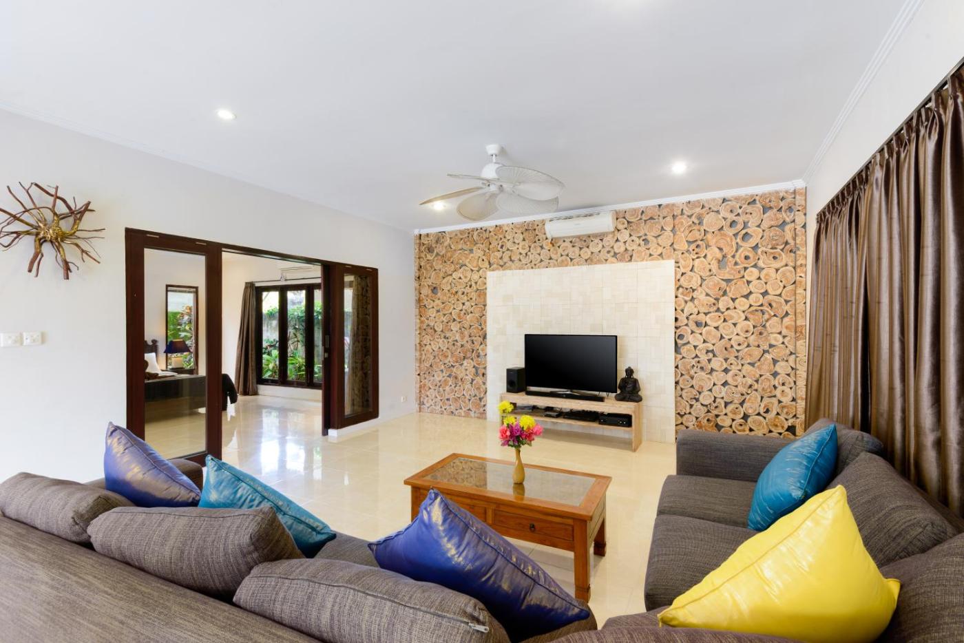 Four-Bedroom Villa. This villa consists of 4 bedrooms and 4 en-suite bathrooms. Cooled by a ceiling fan and air conditioning, each bedroom is furnished with a queen-sized bed and a wardrobe with hangers. Its equipped with a personal safe, a flat-screen TV and a DVD player.
