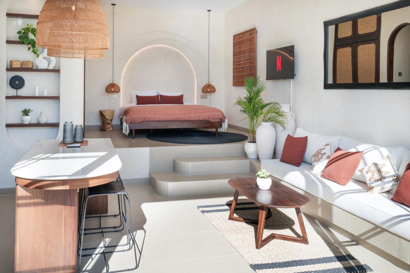 One-Bedroom Villa. This villas special feature is the infinity pool. Featuring a private entrance, this air-conditioned villa consists of a kitchen, 1 bedroom and 1 bathroom with a shower and a hairdryer. The villas kitchen, which features an oven and a microwave, is available for cooking and storing food. Boasting a terrace with garden views, this villa also provides a seating area and a flat-screen TV. The unit offers 1 bed.