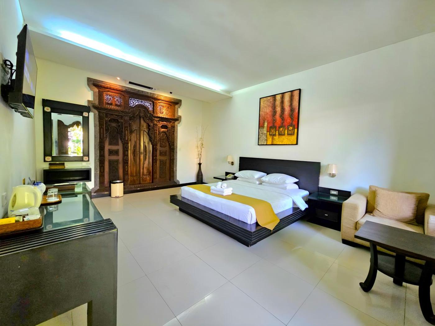 Fitted with traditional Balinese décor, rooms are brightly lit. They are equipped with a TV, minibar and seating area. Some bathrooms have a bathtub while others have shower facilities.