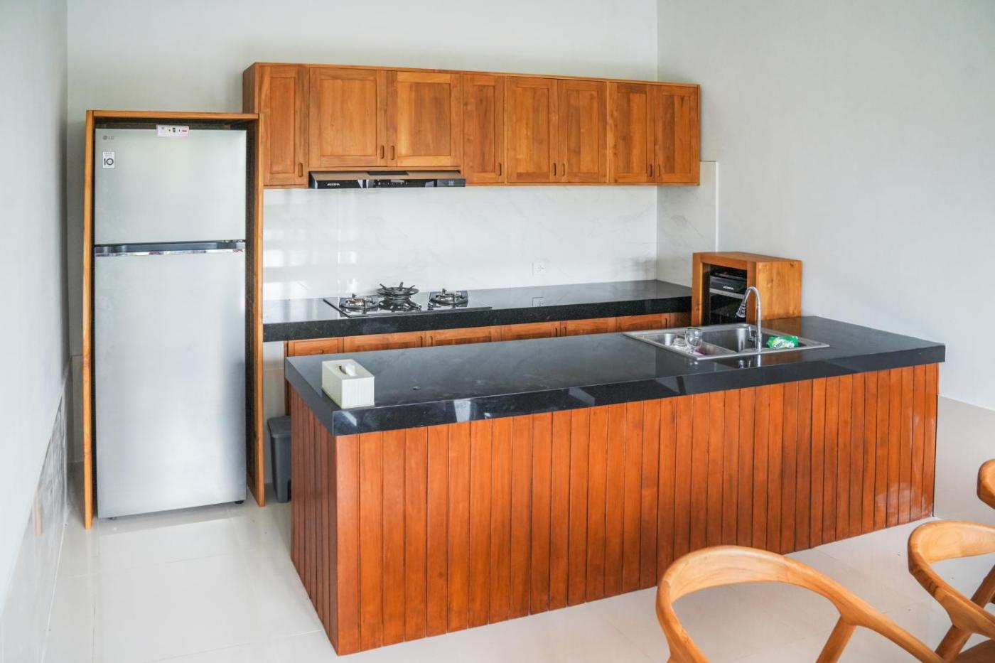 Two-Bedroom Villa. This villa provides a private pool. Featuring a private entrance, this air-conditioned villa is comprised of 2 bedrooms and 2 bathrooms with a shower. The villas kitchen, which features a stovetop and a refrigerator, is available for cooking and storing food. The villa offers a dining area, a wardrobe and an outdoor dining area. The unit offers 2 beds.