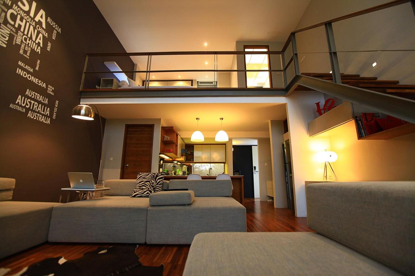 One-Bedroom Apartment Sleep 4 people. Suitable for up to 4 guests, this 2-story apartment features an equipped kitchen with a dining area, a living area with two single sofa beds, a mezzanine bedroom with a King-size bed, Samsung Smart satellite TV, and one bathroom. The bathroom comes with a shower facility and free toiletries. It accommodates a maximum of 4 persons. No extra bed is available. One child aged 6 years old or younger is allowed to stay for free using existing beds. ;