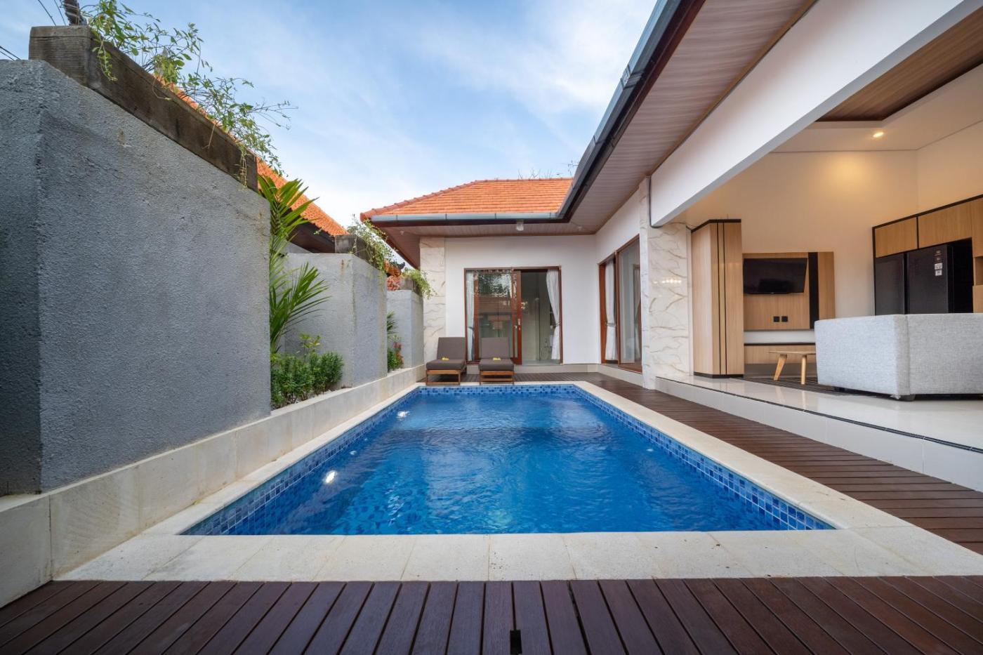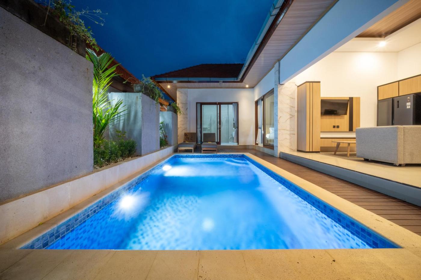 Villa with Private Pool. This villas standout feature is the private pool. This air-conditioned villa includes 1 living room, 1 separate bedroom and 1 bathroom with a bath. In the well-fitted kitchen, guests will find a stovetop, a refrigerator, an oven and a microwave. Boasting a terrace with pool views, this villa also offers a seating area and a flat-screen TV. The unit has 1 bed.