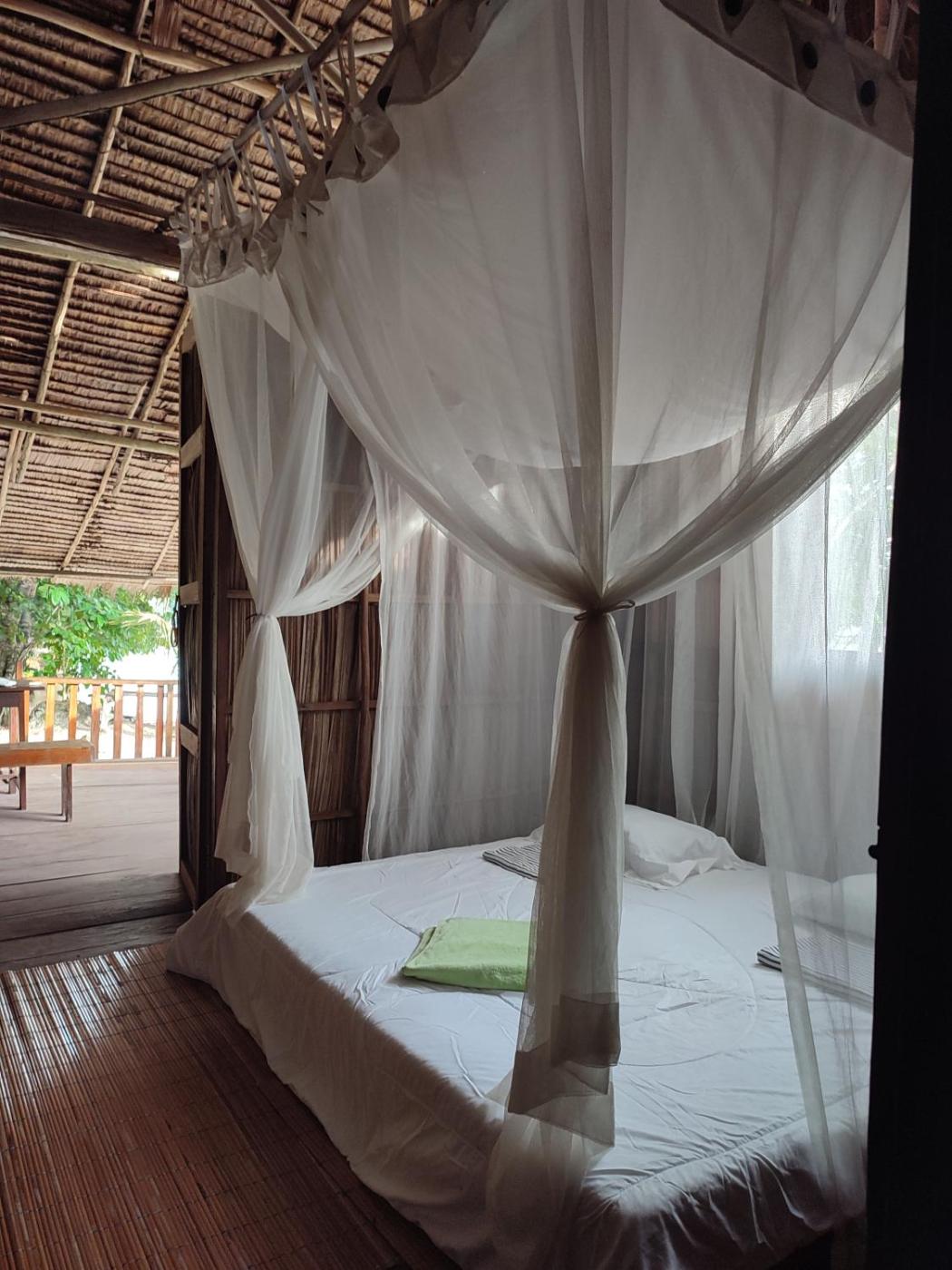 Towels and bed linen are featured in the guest house.
